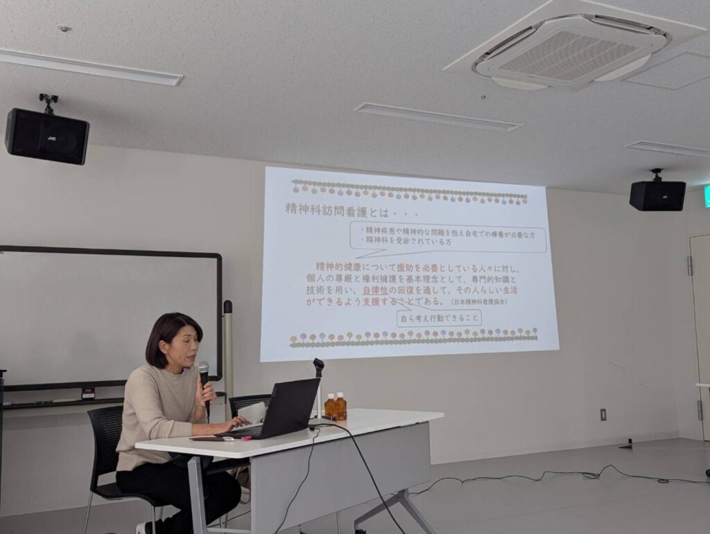 投稿が遅くなりました。12/13に相談支援事業所のリアン様で家族会が開催されました。りんくからも、吾妻と磯上が参加し、吾妻より訪問看護のお話をさせて頂きました。その後の座談会ではご家族の皆様よりたくさんのご意見を頂き、有意義な会でした。またみんなで話す機会があるといいなと思いました。